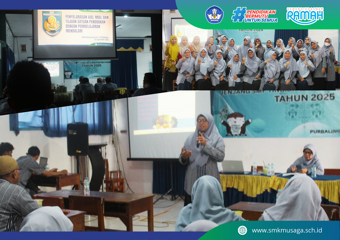 Beranda | WartaMusaga - (Selasa, 16/09-2025) Dalam rangka menciptakan ekosistem pendidikan yang seleras dengan tujuan implementasi Pembelajaran Mendalam, SMK Muhammadiyah 1 Purbalingga lakukan Penyelarasan Visi, Misi, dan Tujuan Satuan Pendidikan dengan Pembelajaran Mendalam (Deep Learning). Kegiatan ini dikemas dalam bentuk workshop yang diikuti oleh seluruh guru dan tenaga kependidikan sebagai tindak lanjut dari kegiatan Pelatihan Pembelajaran Mendalam Bagi Kepala Sekolah. Para peserta mendapatkan pemahaman mengenai pentingnya implementasi Pembelajaran Mendalam dan melakukan review bersama terhadap visi, misi, dan tujuan sekolah. Hal ini penting dilakukan karena efektivitas implementasi Pembelajaran Mendalam tidak hanya bergantung pada implementasinya di kelas, melainkan juga pada sejauh mana visi, misi, dan tujuan satuan pendidikan selaras dengan tujuan Pembelajaran Mendalam.