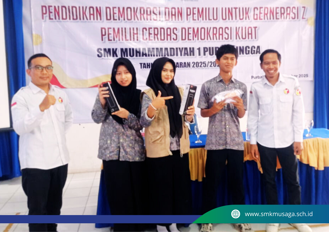 Beranda | WartaMusaga – Pemilih pemula berperan penting dalam mewujudkan pemilu yang jujur, adil, dan damai. Untuk menumbuhkan kesadaran pentingnya peran pemilih pemula yang cerdas dan berintegritas, Badan Pengawas Pemilu (Bawaslu) Kabupaten Purbalingga melakukan sosialisasi edukasi kepemiluan kepada pelajar SMK Muhammadiyah 1 Purbalingga yang telah memiliki hak konstitusi dan hak memilih. BAWASLU Goes to School ini dilakukan pada tanggal 29 Oktober 2025 dengan sasaran para pemilih pemula Genenerasi Z yang lahir tahun 1997 hingga 2009. Bawaslu berperan dalam mengawasi seluruh tahapan pemilu dan pemilihan, serta mendorong partisipasi masyarakat, termasuk pemilih pemula.