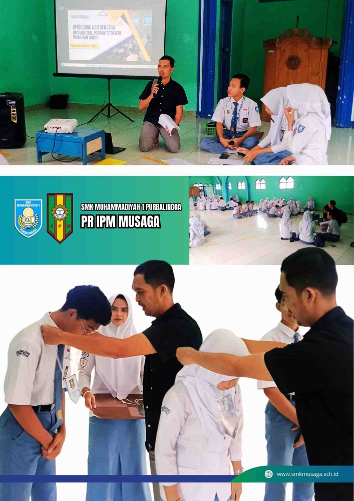 Beranda | WartaMusaga - Pimpinan Ranting Ikatan Pelajar Muhammadiyah (IPM) SMK Muhammadiyah 1 Purbalingga menggelar kegiatan bertajuk “Upgrading dan Renstra – Upgrade Skill, Perkuat Strategi Wujudkan Target” pada Sabtu (29/11). Bertempat di Masjid Al Mujahadah SMK Muhammadiyah 1 Purbalingga, kegiatan ini diikuti seluruh pengurus IPM Musaga hasil Pemilu IPM periode 2025/2026 sebagai rangkaian awal pembekalan kader sebelum melaksanakan tugas organisasi selama satu periode ke depan.