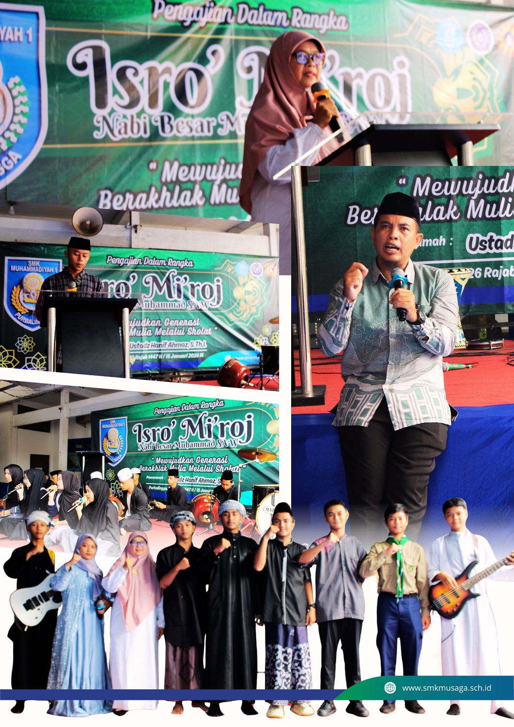 Beranda | WartaMusaga - Dalam rangka memperingati peristiwa agung Isro’ Mi’roj Nabi Besar Muhammad SAW, SMK Muhammadiyah 1 Purbalingga menyelenggarakan kegiatan pengajian dengan tema “Mewujudkan Generasi Berakhlak Mulia Melalui Sholat” pada Rabu, 15 Januari 2026 M/26 Rajab 1447 H. Kegiatan dengan pendampingan guru ini dilaksanakan di halaman sekolah dan diikuti oleh seluruh siswa dengan penuh antusias dan kekhidmatan.